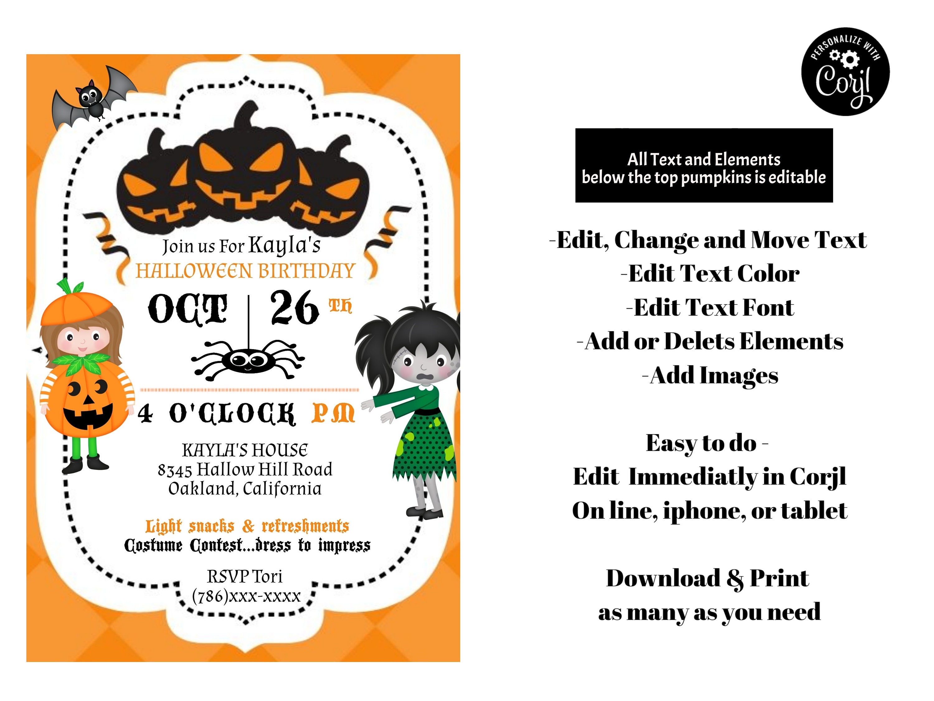 Editable Halloween Party Invitation Kids Halloween Party – Etsy.