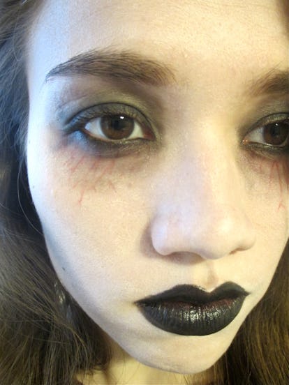 So, as you can see, most of her face is made to look like a zombie but she has left one eye and the surrounding area looking glam.