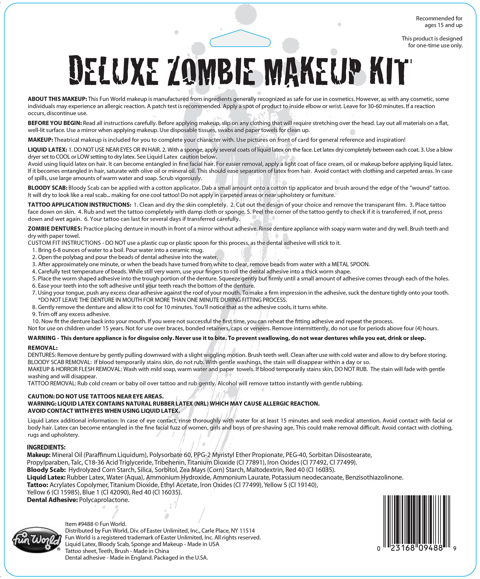The Zombie Makeup Kit is literally everything you need to create an authentic zombie appearance to go along with your zombified costume creation!